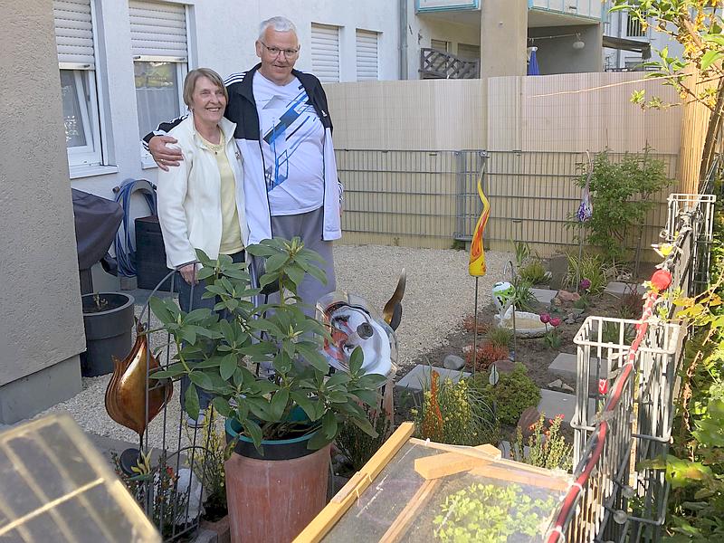 Ebenfalls einen Gartentraum verwirklicht hat Familie Popp. Sie übernahmen vor einem Jahr einen Garten der sich nicht im Fokus der Vorbesitzer befand. Dieses unwegsame Gelände rodeten und begrünten sie in akribischer Kleinarbeit. Die Weide ist selbst gezogen. Ebenso wie die Küchenkräuter. Petersilie ist bereits erntereif in einem Hochbeet. Weiß man um die körperliche Beeinträchtigung von Herrn Popp ist es um so bewundernswerter was er geschaffen hat. Liebevoll ergänzt mit Glaskunst aus dem Bayrischen Wald.